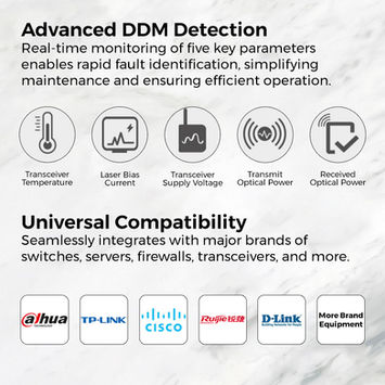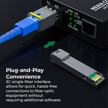 The SC 1G SFP (Small Form-factor Pluggable) module provides a reliable and efficient solution for high-speed optical data transmission at 1Gbps. Featuring plug-and-play functionality, it allows for easy installation without the need for additional software. With its durable all-metal shell, the module ensures stable performance, low power consumption, and seamless integration into a variety of networking applications, making it ideal for both short-range and long-distance links.